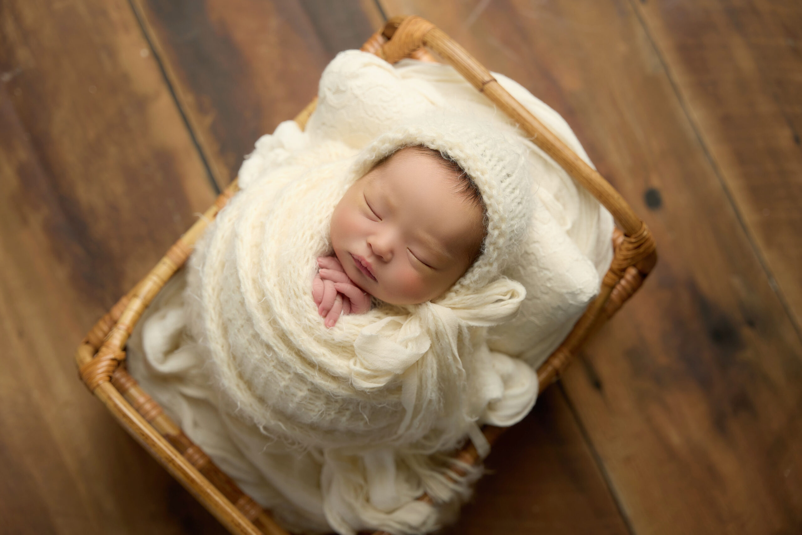 また、上質なおくるみやヘッドバンド、海外から取り寄せた籠や小物もご用意しています。小物を主役にするのではなく、赤ちゃんそのものの美しさが自然に引き立つことを大切にした、やさしく上品なニューボーンフォトをお届けします。